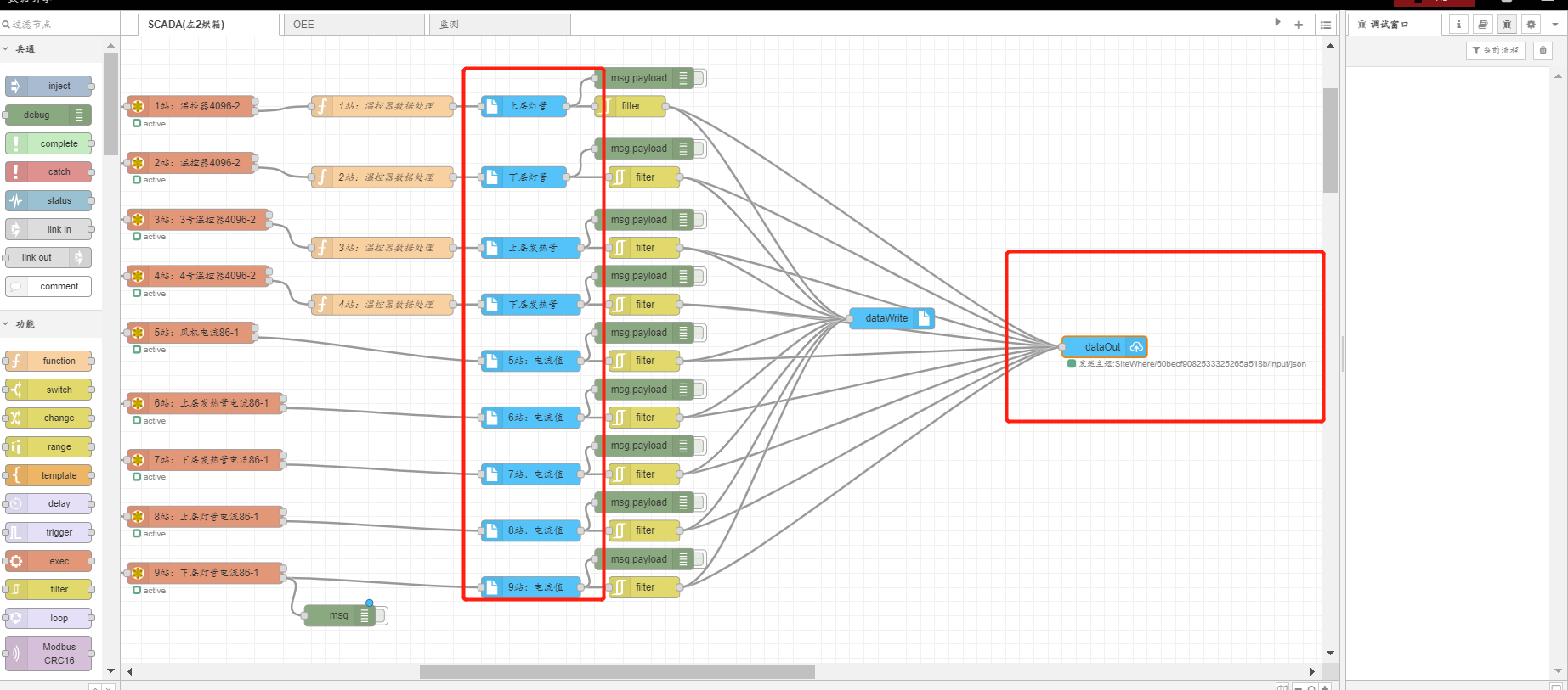 7. 右边工具栏第3个是调试窗口,debug节点输出的信息在这里都可以看到,并且点击输出时间旁边的node,页面会跳转到那个debug节点